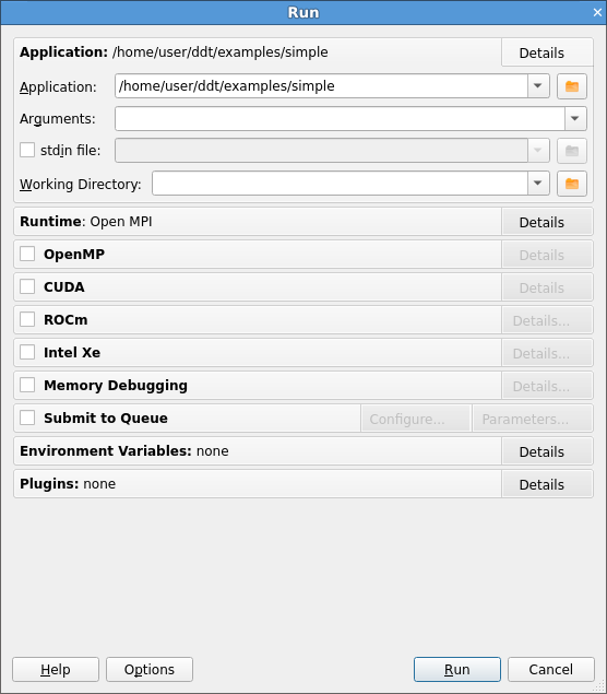 • If you have a single-process license you will immediately see the Run dialog that is appropriate to run a single-process program.