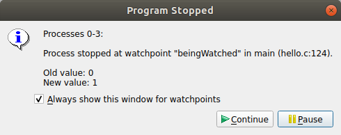 Consequently, watchpoints should, where possible, be a single value that is stored in a single memory location. While it is possible to watch the whole contents of non-trivial user defined structures or an entire array simultaneously, or complex statements involving multiple addresses, these can cause extreme application slow down during debugging.