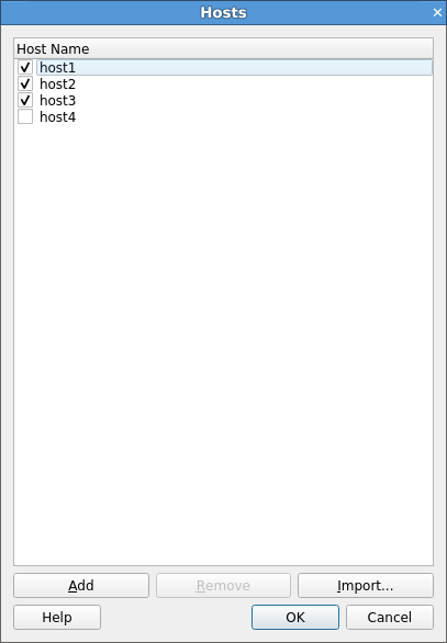 To import a list of hosts from a file, click Import.