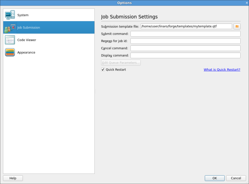 As you can see, most of the settings are left blank. There are some differences between the Submit command in Linaro DDT and what you would type at the command-line: