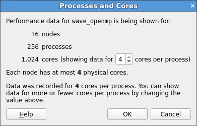 The Processes and Cores window enables you to change the number of cores per process.