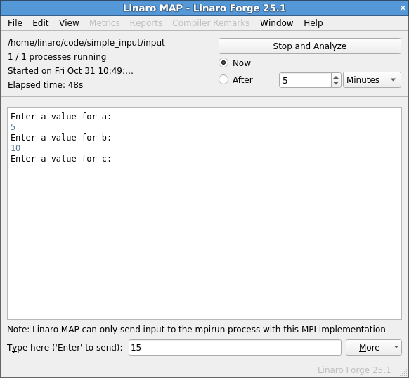 Click More to send input from a file, or send an EOF character.